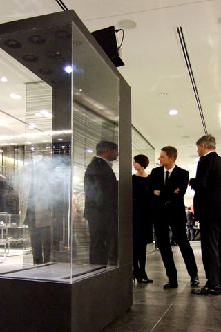 versteckt installierte Nebelmaschine gibt kurze Rauschstöße in den Raum,